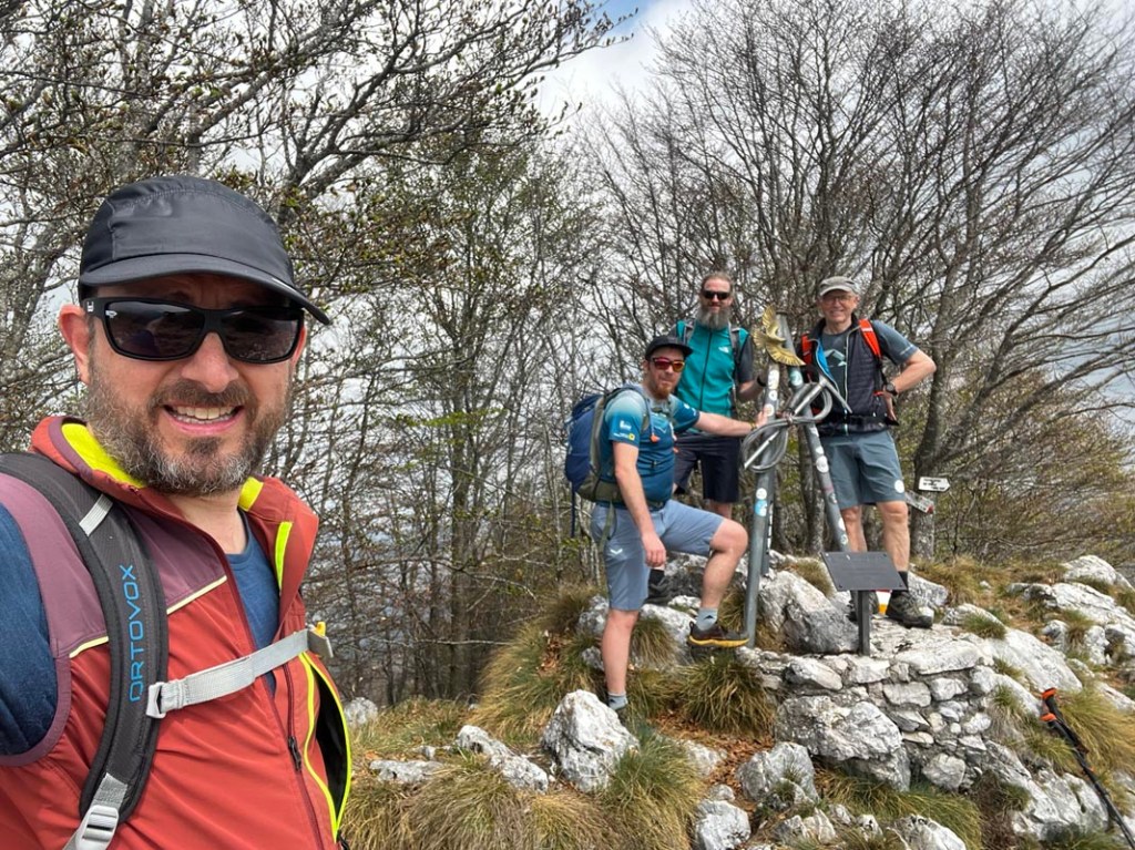 Schließlich erreichen wir den Gipfel des Monte Spino (1.504m). Ein kleines Kreuz markiert die höchste Stelle.