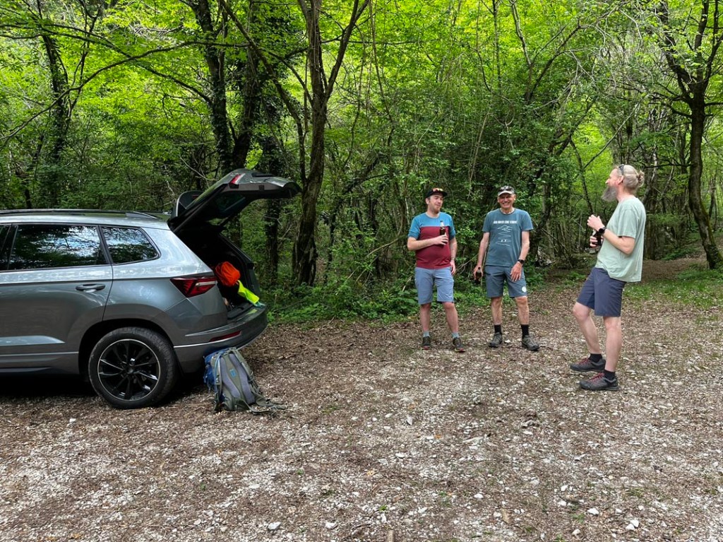 Der zweite Tag unseres Buabenwochenendes ist abgebrochen. Wir wollen heute den Monte Spino besteigen. Daniel hat sich am Vortag die Achillesferse beleidigt, daher macht er heute einen gemütlichen Tag, während der Rest vom Volksfest mit dem Auto zum Wanderparkplatz fährt.
