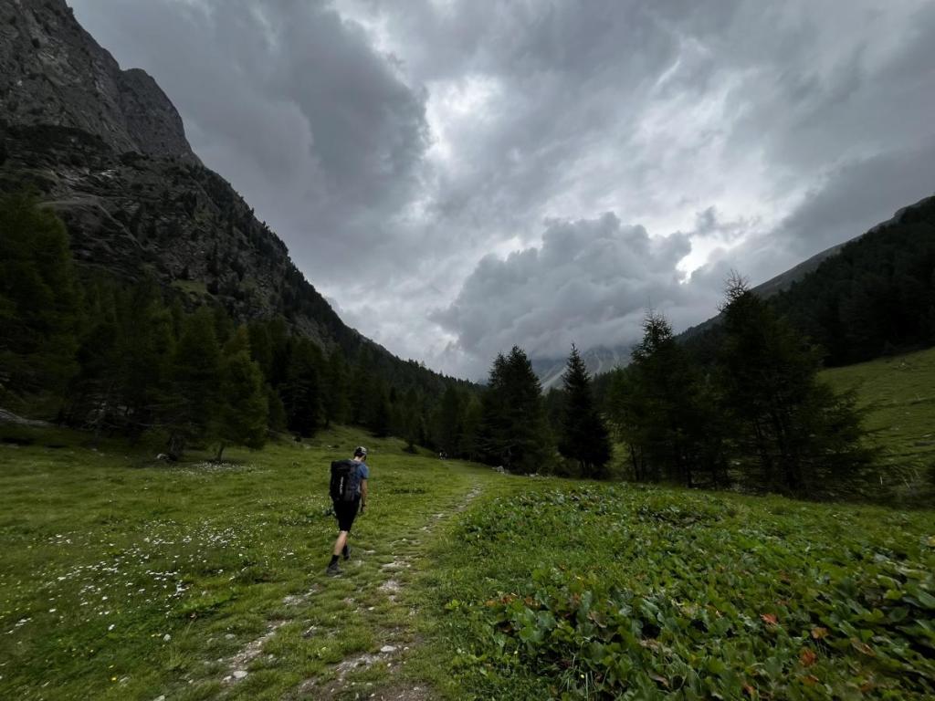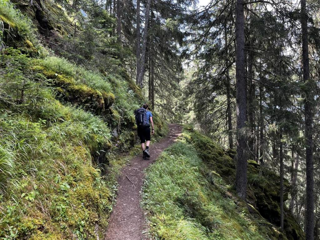 Zuerst noch ein wenig im Wald, wird die Vegetation immer lichter und wir bekommen einen Blick auf unser Tagesziel.
