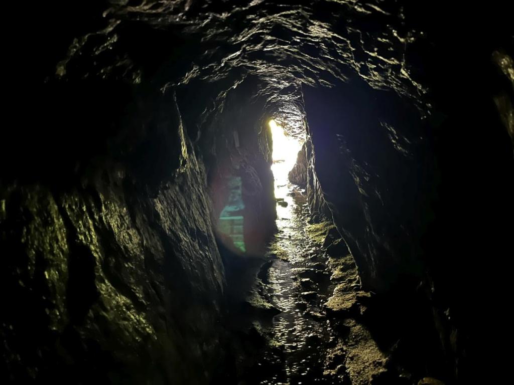 Am aktuell geschlossenen Säulinghaus machen wir eine Trinkpause und verstecken eine Flasche Bier, die wir extra für den Schluss mitgenommen haben.