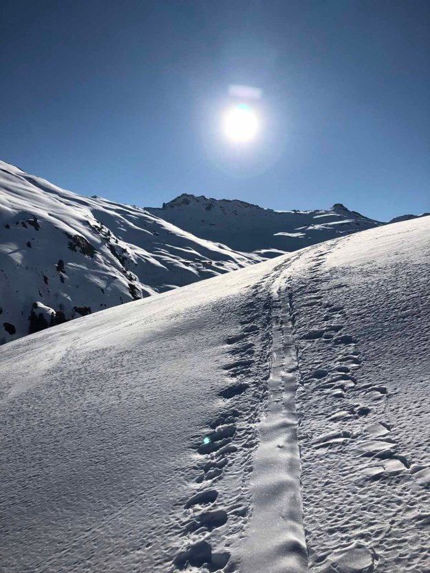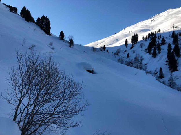 Spannend, mit immer wieder schönen Passagen steigen wir nun ab, hinunter ins Kaisertal. Unser Tagesziel ist das Anton-Karg-Haus, einer Alpenvereinshütte, auf der wir übernachten werden. Nun zehrt der Weg schon an den Kräften des einen oder anderen, aber noch sind wir nicht da… es sind noch mindestens 5 „Schlenker“.
