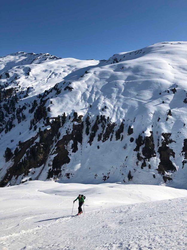 Am Kaiserlift stellen wir zu unserer Überraschung fest, dass es sich hier um einen Modernen Einser-Sessellift handelt. Ich hatte keine Ahnung, dass diese Form der Beförderung noch hergestellt wird. Den Kindern gefällt’s, und uns auch. Zusätzlich ist die Streckenführung an bestimmten Stellen spektakulär, da sehr hoch und ausgesetzt.