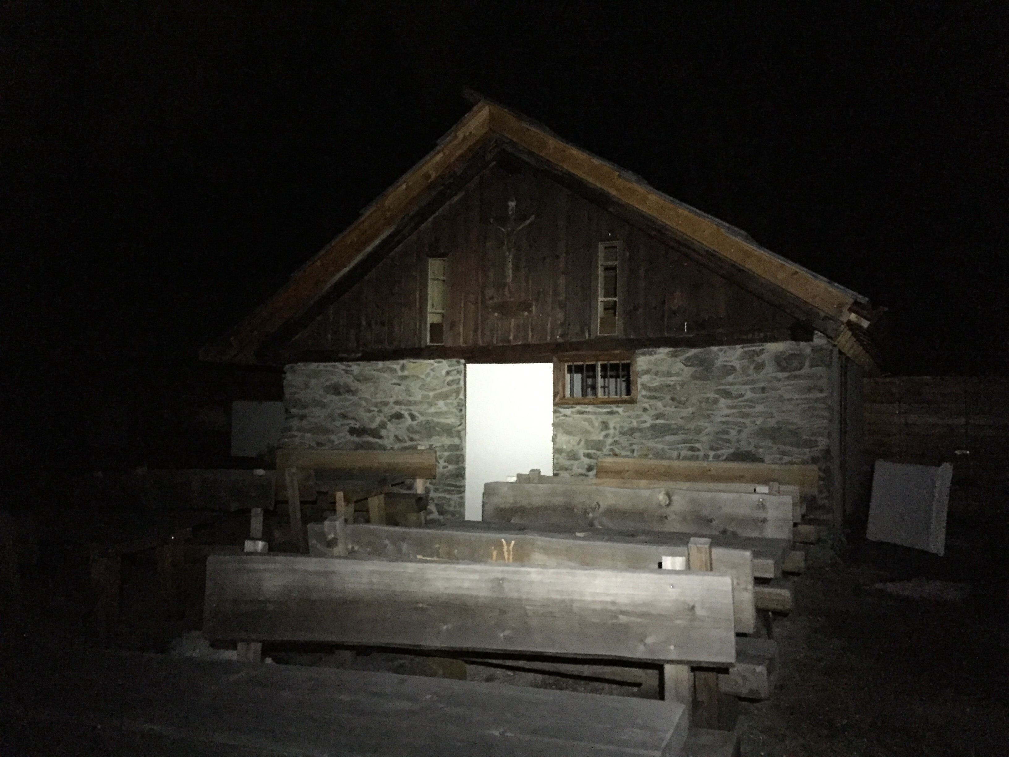 Wir gönnen uns ein Getränk in der Hütte, aber lange bleiben wollen wir auch nicht, da wir noch im Lichte der Sonne hinunterfahren wollen. Ausserdem wurden wir beim Hineingehen in die Hütte schräg angesprochen, von Wegen Türe schließen und so… später dann, kurz vor der Abfahrt entschuldigt sich eine der Damen noch mit einem Schmäh.