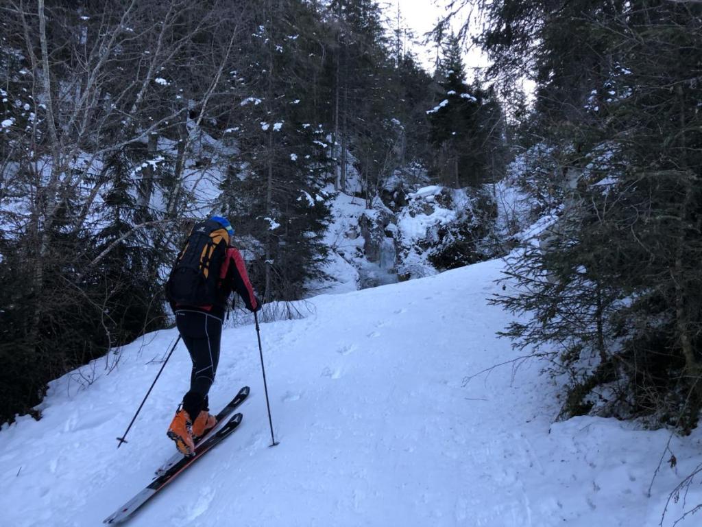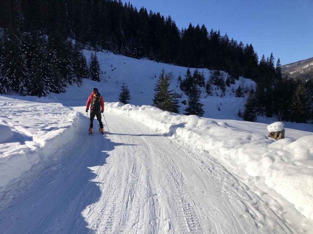 Das letzte Stück der Forststraße ist sehr eisig, aber auch das schaffen wir und erreichen wohlbehalten den Parkplatz. Gerade als wir unser Zeug ins Auto verfrachten, ein Pärchen neben uns macht das selbe, ertönt ein lauter Knall… und im Anschluss hören wir „Zschhhhhhhhh…“… der Lawinenairbag des „Nachbarn“ hat sich aus Versehen aktiviert. Nun gut, jetzt habe ich das auch mal gesehen…