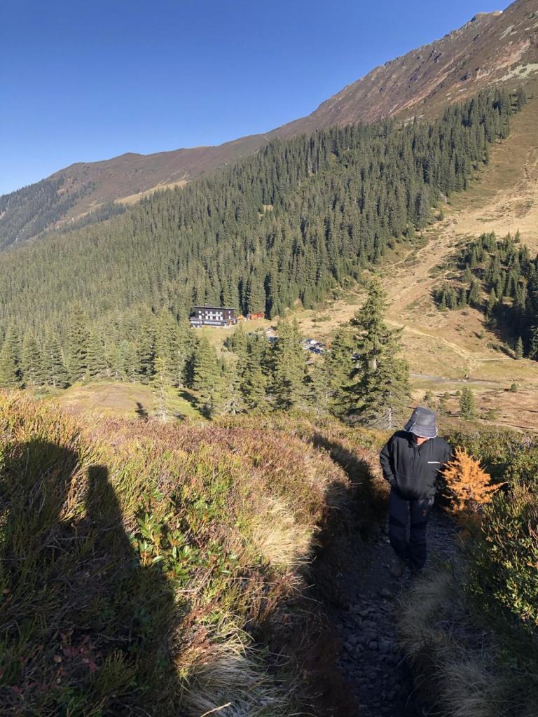 Nach einer gemütlichen Rast, das Aufstehen fällt uns fast ein wenig schwer, wandern wir über den Talsteig hinab zum Parkplatz. Mit den letzten Sonnenstrahlen erreichen wir das Tal.