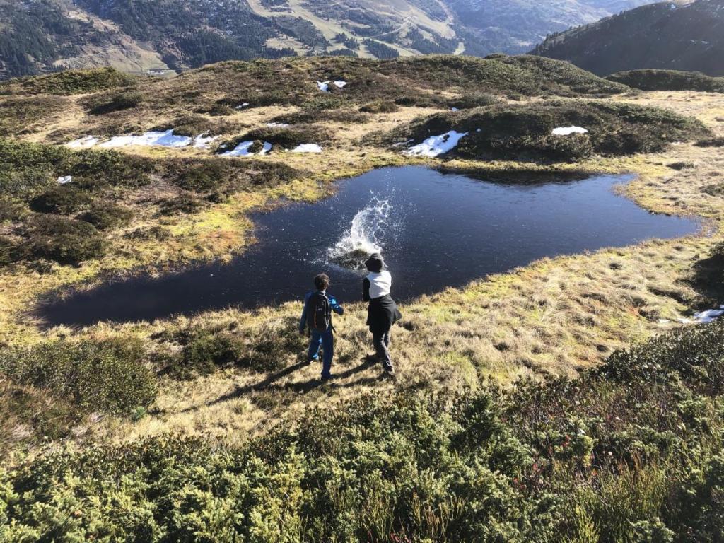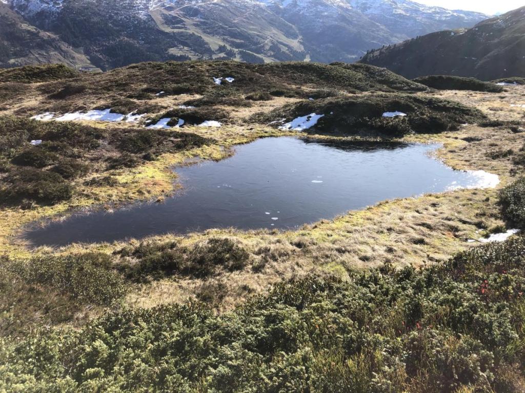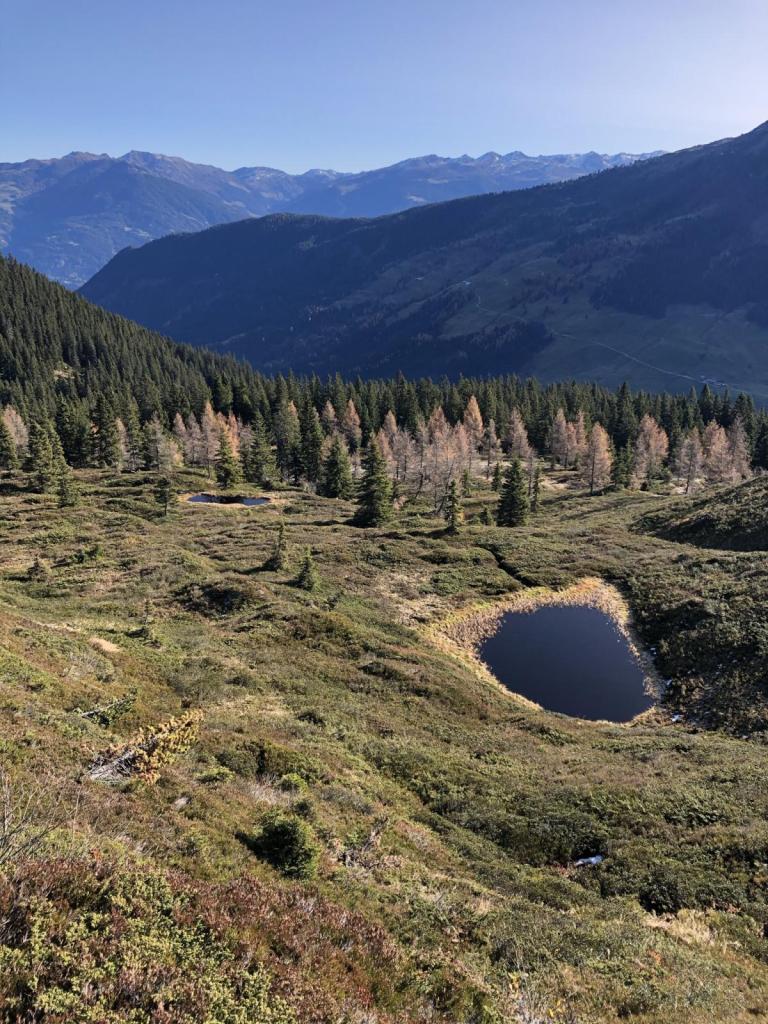 Der Pfad führt uns weiter, fast bis zum Talende. Bei einem kleinen Bergsee, der ganz in der Nähe vom Klammjoch (2.359m) liegt, zweigen wir ab und wandern wieder Talauswärts.