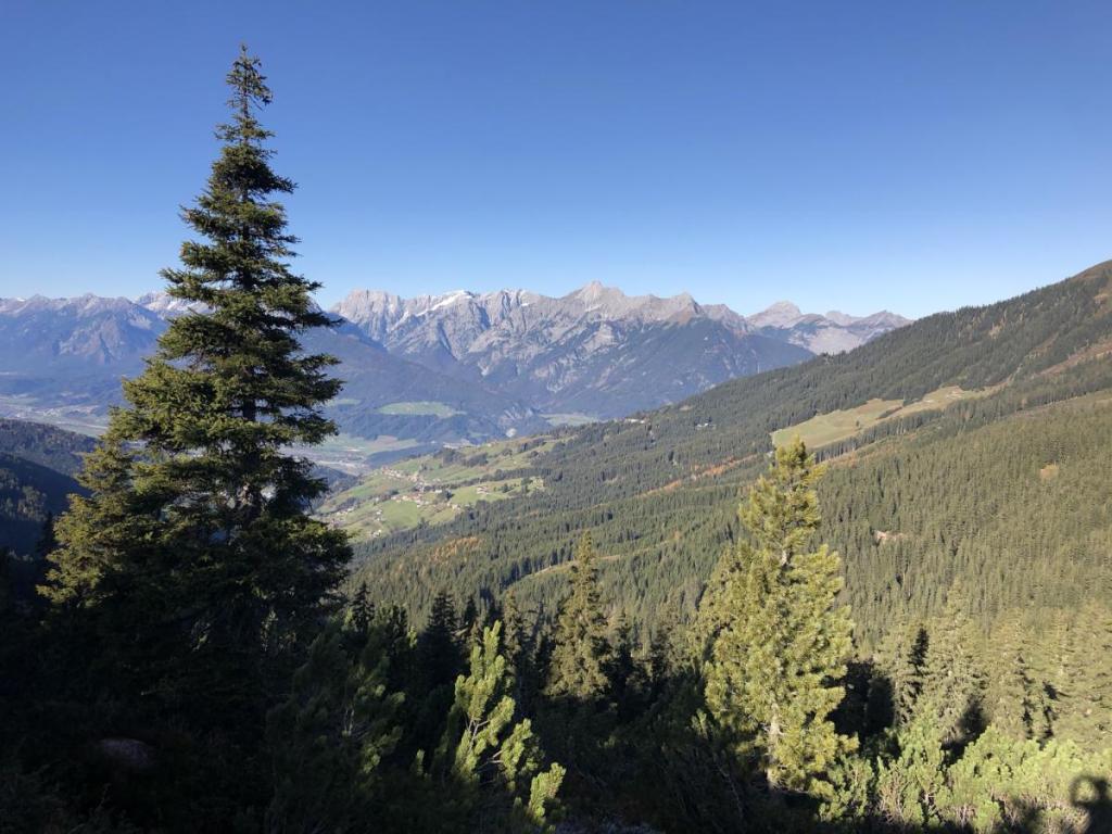 Die Aussicht von der Fläche vor der Poltenalm auf das Navistal ist phänomenal.