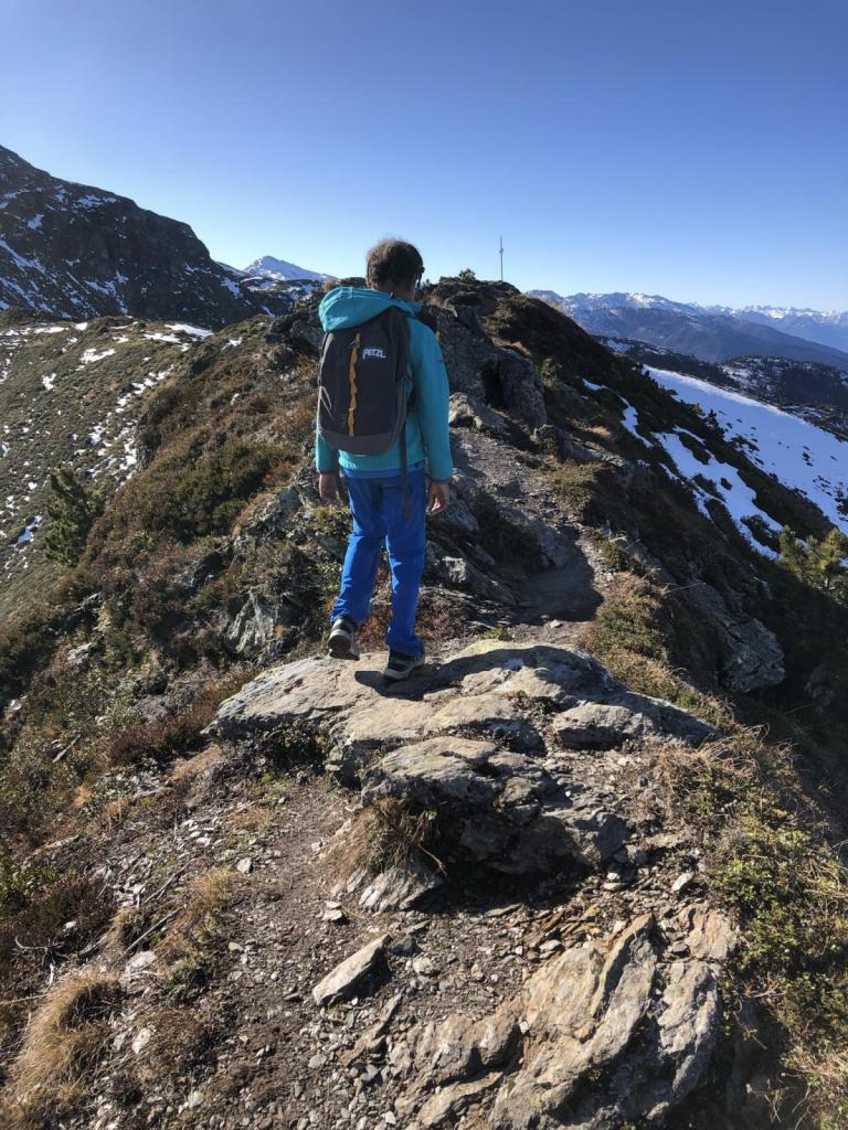Nach einer feinen Pause auf dem Gipfel wandern wir weiter, wir haben noch eine gute Strecke vor uns. Der erste Teil führt uns hinunter zum Mölsjoch (2.334m)…