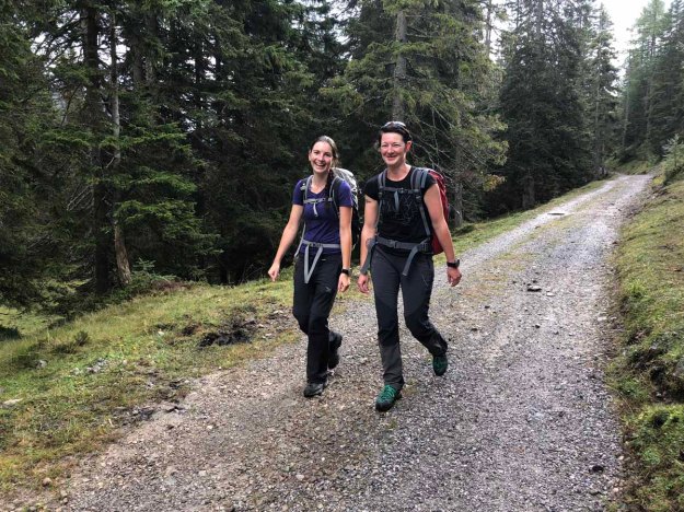 Der Weg vom Gschnitztal über die Innsbrucker Hütte ist ein Langer, daher machen wir uns trotz herbstlich-später Dämmerung früh auf. Um 6:00 Uhr starten wir schon vom Wanderparkplatz kurz nach Gschnitz, mit von der Partie: Michi, Max und ich. Während wir uns noch die Bergschuhe anziehen, geistern eine deutsche Wanderin um uns herum, der wir heute noch öfter begegnen werden.
