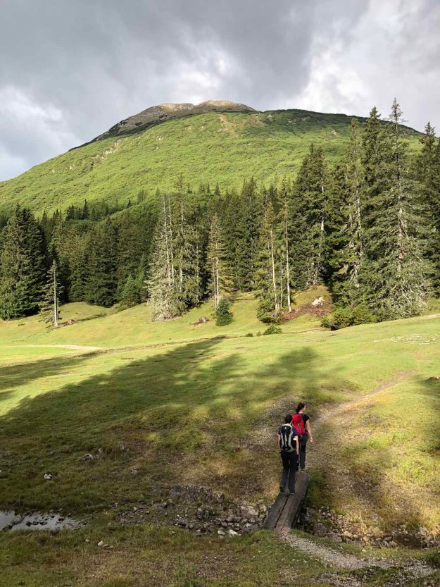 Der Aufstieg über den Jubiläumssteig ist unspektakulär, aber sehr schön und mit jedem Höhenmeter wird die Aussicht aus besser. Bald schon haben wir eine umfassende Sicht auf die Tribulaune, die Schwarze Wand und die Gargglerin…