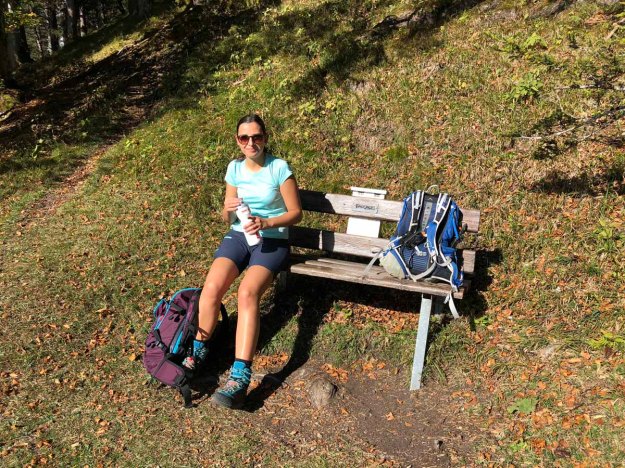 Rasch haben wir auch diesen Teil durchquert, dann sehen wir schon die Hütte vor uns. Endlich, denken wir uns alle Drei… denn durstig sind wir schon! Und ein wenig hungrig… zumindest die Michi. Essen tun wir aber dann alle was… Es ist hier total gemütlich in der Sonne, wir genießen zum zweiten Mal heute das gemütliche zusammensitzen und haben es lustig.
