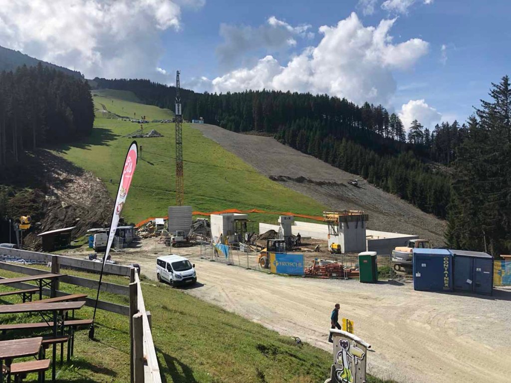 … der ganze Bereich wird hier umbaut. Fuhr hier noch letztes Jahr ein „Einer-Sessellift“ im Sommer, umgebaut zu einem Schlepplift im Winter, ist nun von der alten Bahn nicht mehr viel zu sehen. Die meisten Stützen sind schon abgerissen.