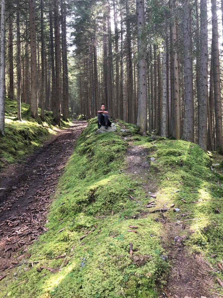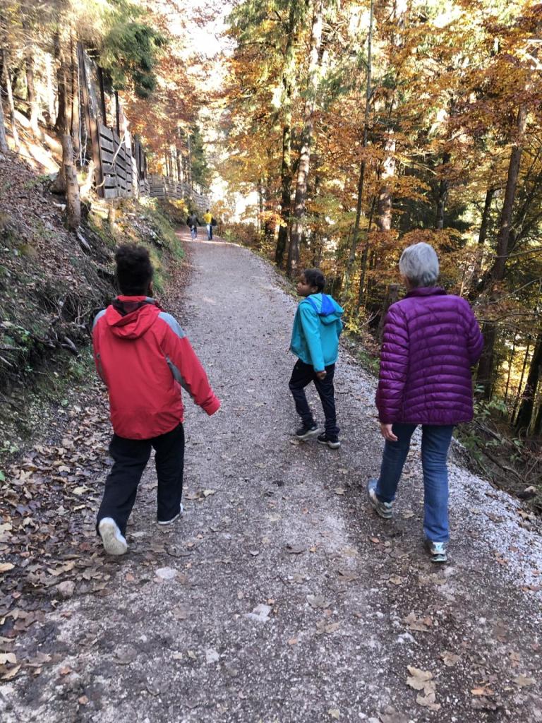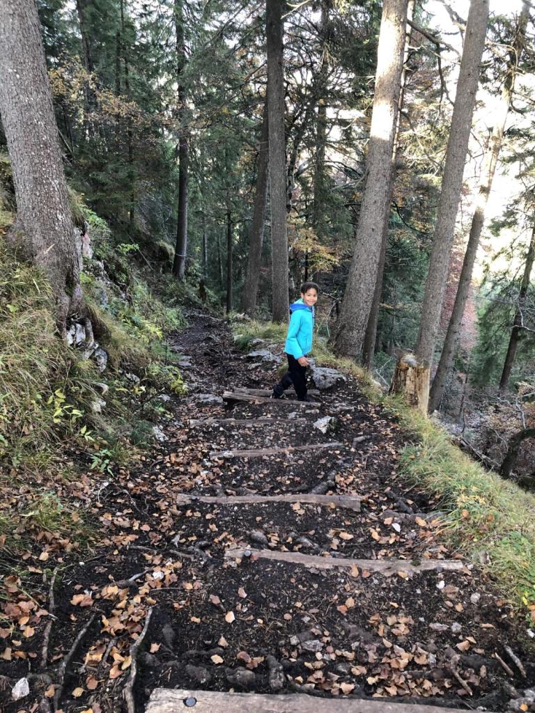 Am Morgen haben wir mit Papa ausgemacht, auf das Säulinghaus zu wandern. Sara bleibt in der Hütte, während Letu und ich mitgehen. Von der Hütte starten wir ein Stück über den Forstweg, dann erreichen wir den Steig.