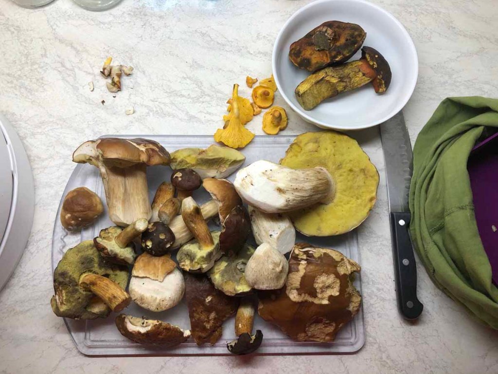 Immer wieder finden wir Steinpilze… leider ist ein guter Teil der leckeren Schwämme wurmstichig und muss daher im Wald verbleiben.