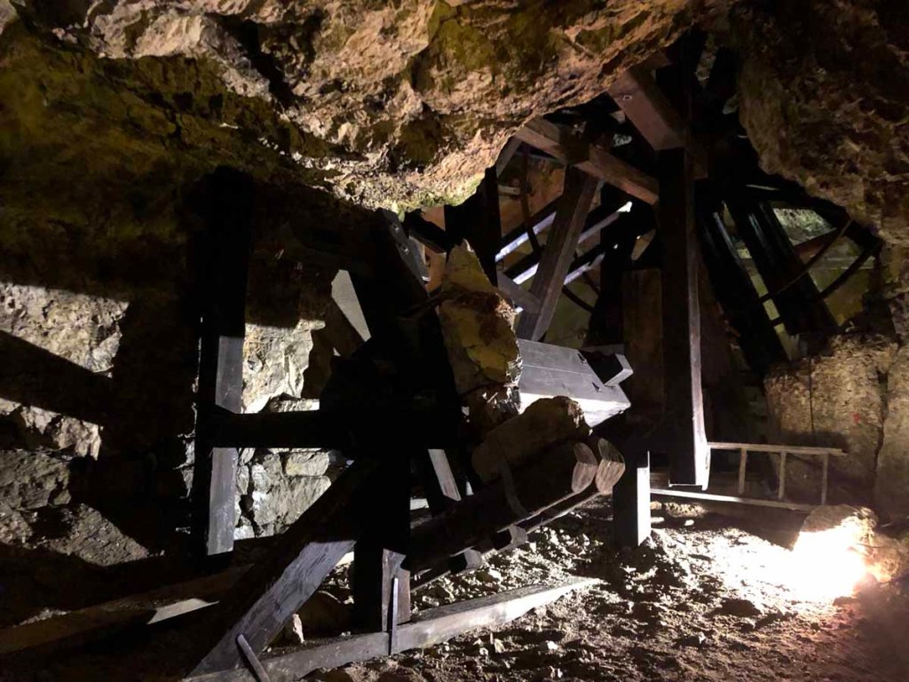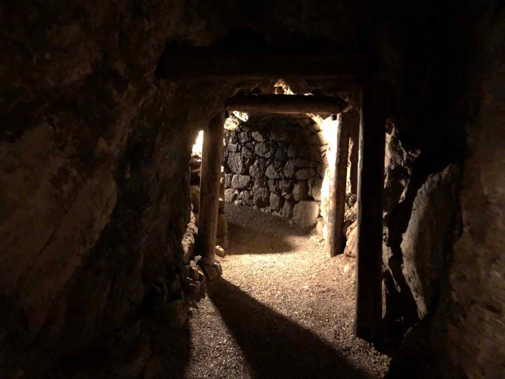 Beeindruckend sind die Trockenmauern, die hier im Bergwerk überall aufgeschichtet wurden. Durch die spezielle Bauweise werden die Mauern durch den Bergdruck immer fester…