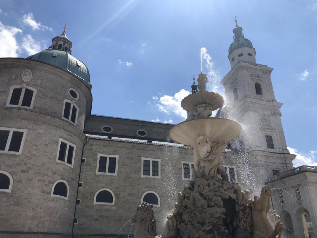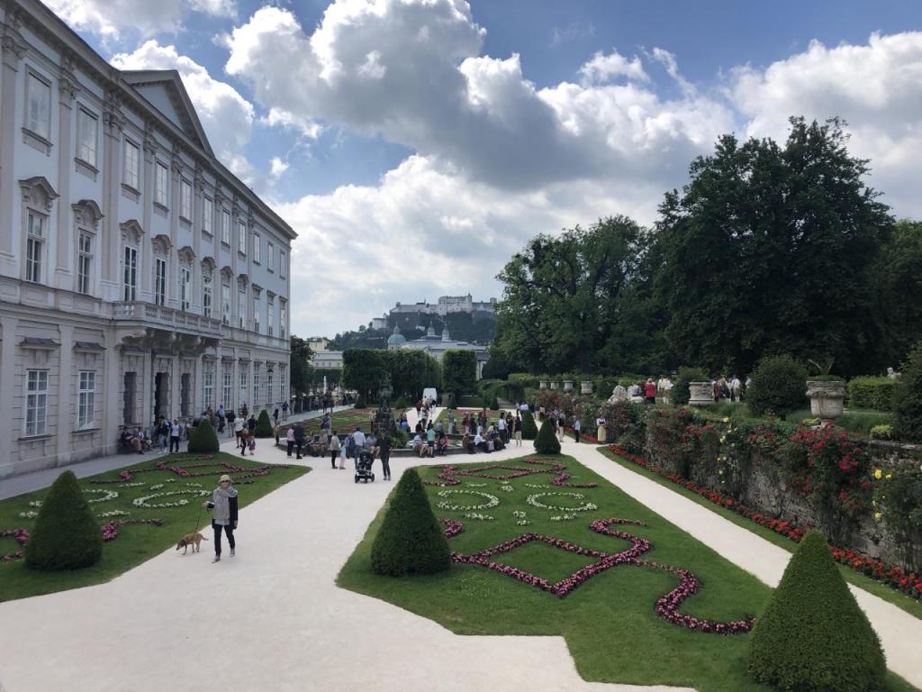 Vom Bahnhof schlendern wir in die Stadt, Richtung Hohensalzburg. Für ebendort haben wir ein Ticket online gebucht, die Burg wollen wir als erstes besichtigen. Beim Mirabelle-Garten bleiben wir kurz stehen und hören einer schönen Blasmusik zu…