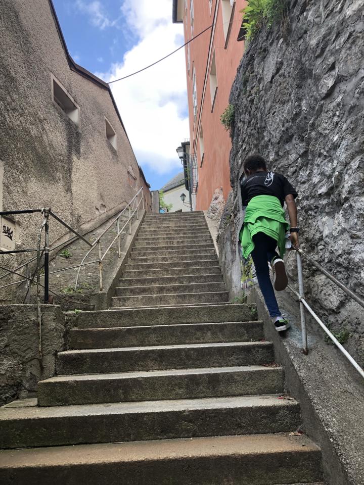 Neben der Besichtigung der Stadt haben wir auch ein paar Geocaches auf dem Programm, daher ist der Weg Richtung Hohensalzburg nicht ganz geradlinig. Die paar Abweichungen von der Route verzeihen mir meine Kinder, dafür beeile ich mich bei der Suche immer… manchmal auch mit Hilfe von Letu.