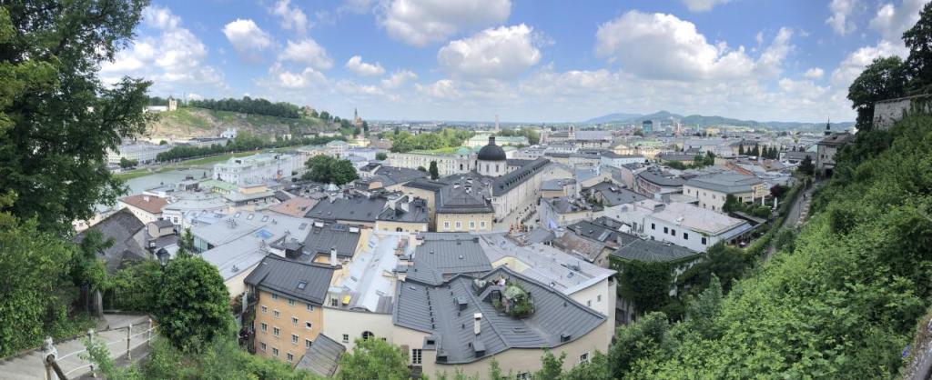 Und an geeigneter Stelle sieht man nun auch die Festung Hohensalzburg, beeindruckend thront das Wehrgebäude über der Stadt…