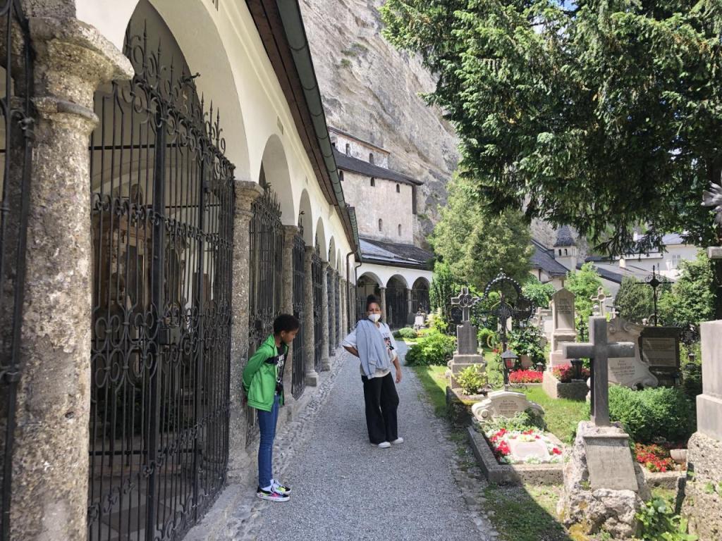 … und auch der Petersfriedhof, an dem neben Joseph Haydn auch die Schwester Mozarts, das Nannerl begraben liegen.
