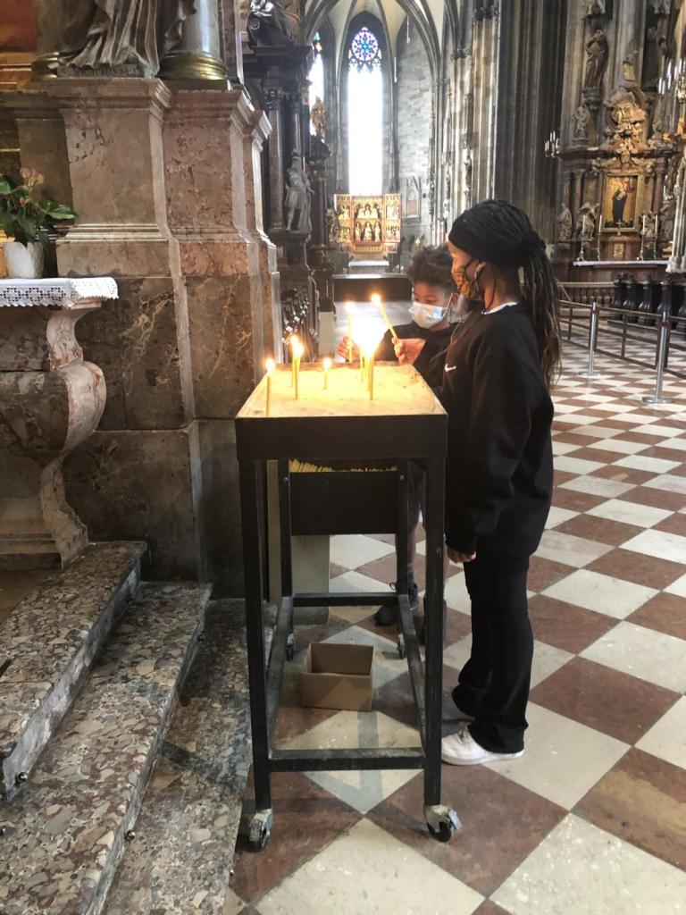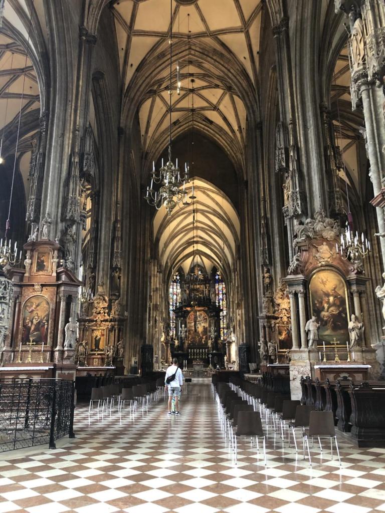 Unsere erste Station ist der Stephansdom, auch Steffl genannt. Als wir am Stephansplatz ankommen sind wir verwundert, wie wenig Menschen hier sind… es ist zwar noch Früh am Tag, aber trotzdem irgendwie komisch…