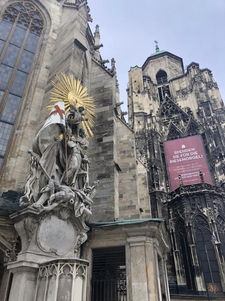 Am Steffl drehen wir dann noch eine Runde um das Kirchenhaus und bewundern es von allen Seiten. Besonders interessant ist die das Bildnis des „Zahnweh-Herrgotts“.