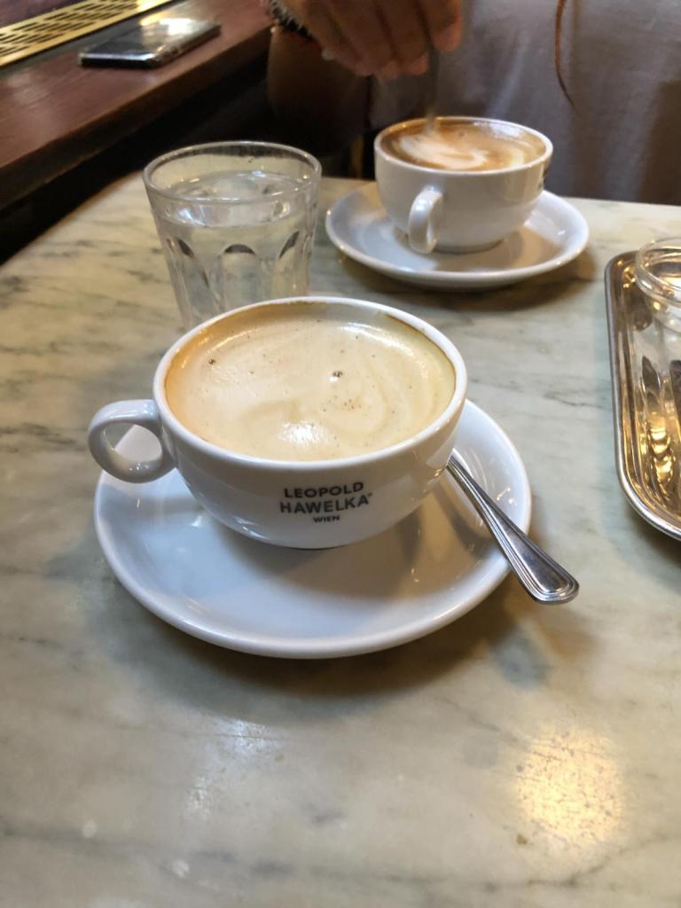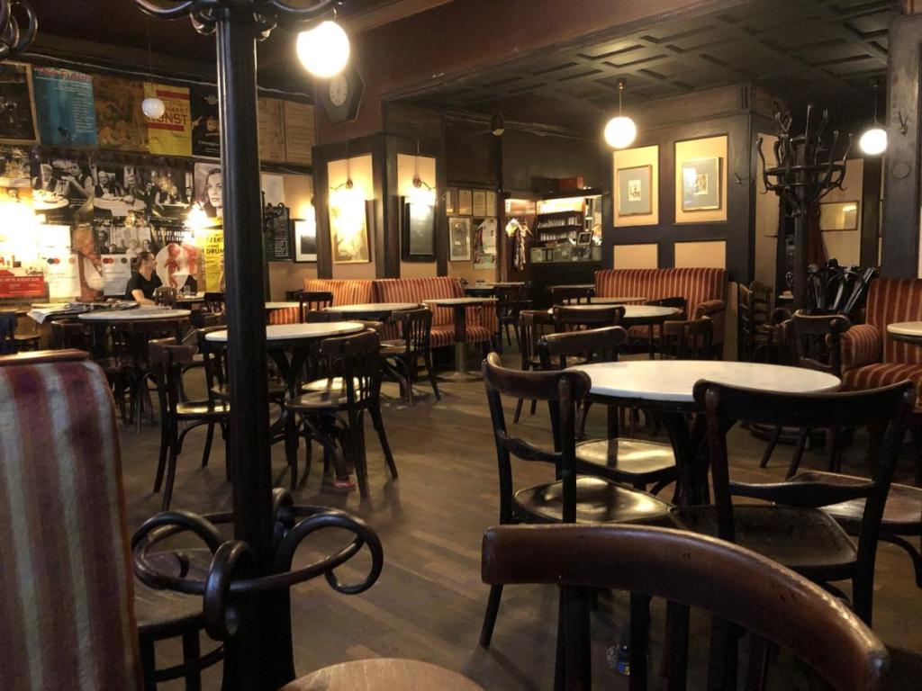 Ein Lokal, das eher meinen Geschmack trifft, ist das Hawelka. Als wir hier vorbeispazieren, beschließen wir spontan, hier noch Kaffee und Kuchen zu konsumieren. Auch hier, es verwundert mich sehr, gähnende Leere… zur Zeit ist Wien ein guter, weil wenig überlaufener Platz zum Besuchen…