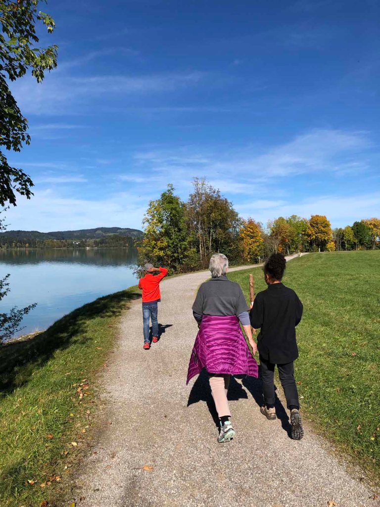 Wir genießen eine kleine Pause im gemütlichen Aufenthaltsraum, dann spazieren wir noch zu einer wunderschönen Kapelle im hinteren Zimmermoos.