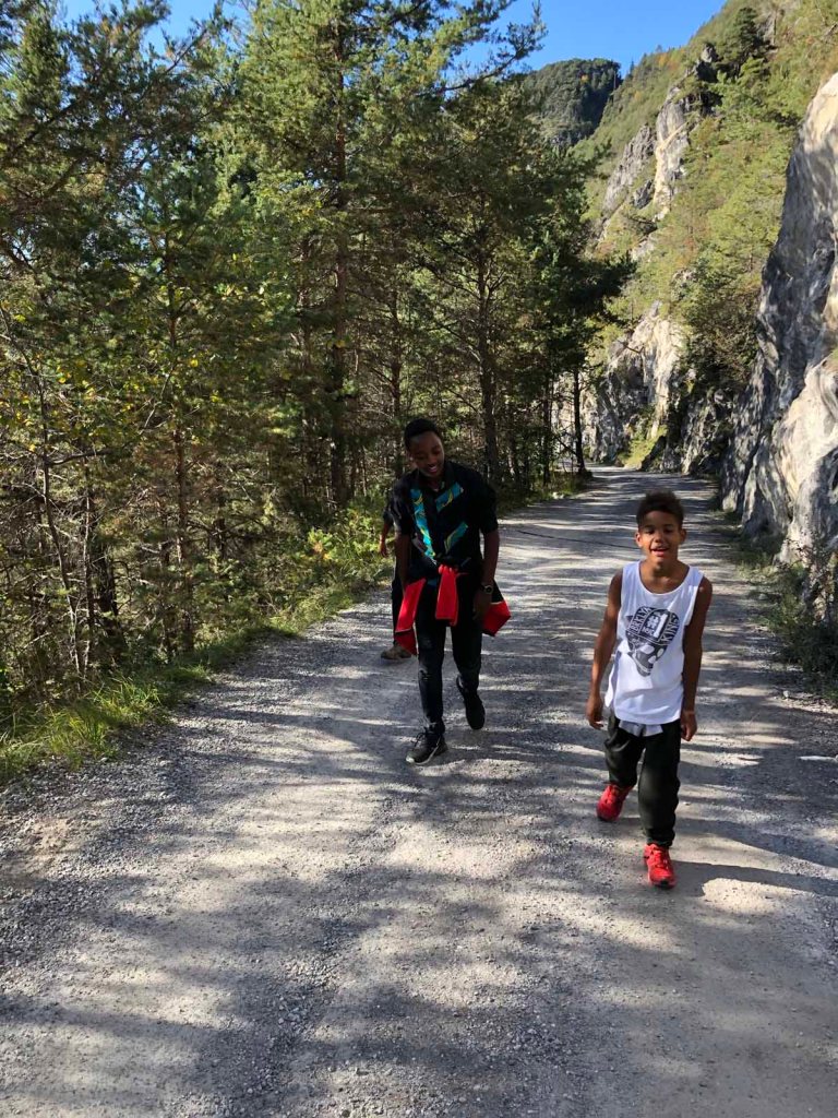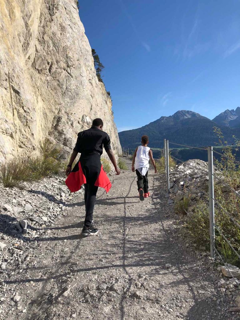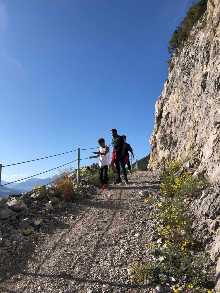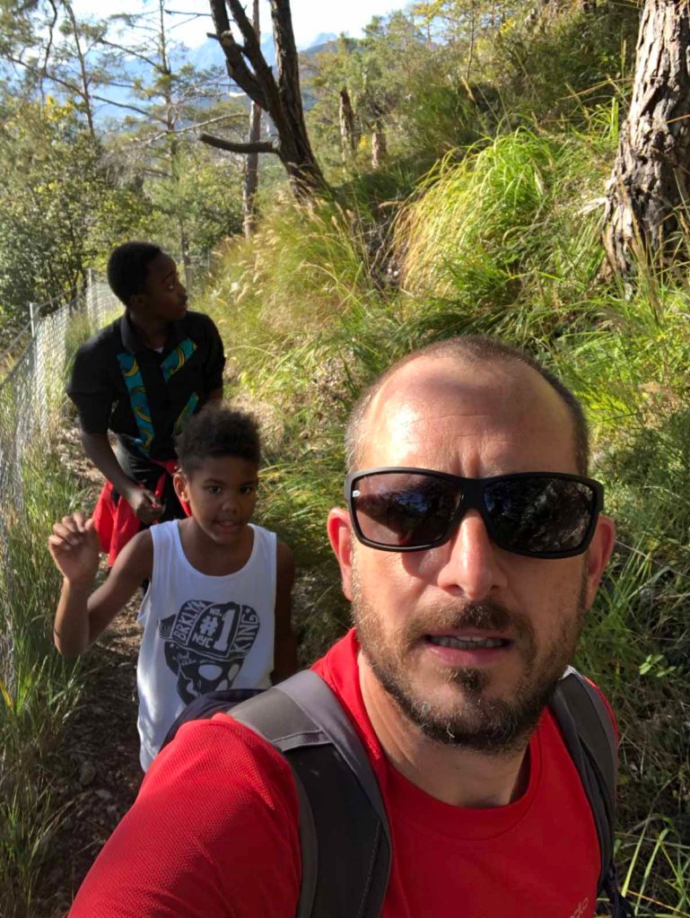 Später am Nachmittag mache ich noch eine kleine Wanderung mit Juri und Letu. Wir wandern zum Hauskogel (1.011m). Nicht gerade der höchte Berg, den wir bestieben haben, aber trotzdem ist es toll.