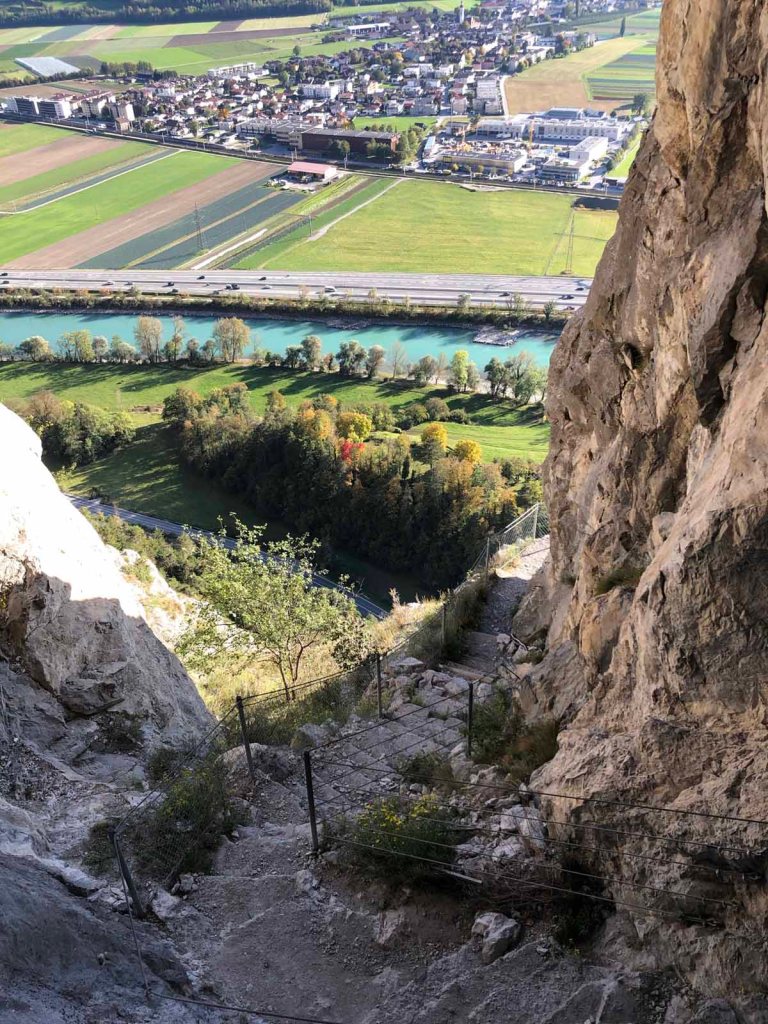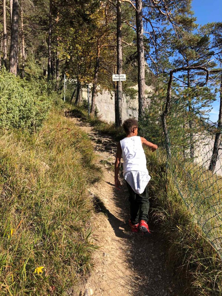Nun geht es steil hin ins Tal, wir müssen allerdings aufpassen, daß wir nicht in das falsche Tal abzweigen, denn dann würden wir unweigerlich im Inntal enden. Und das wollen wir sicher nicht…