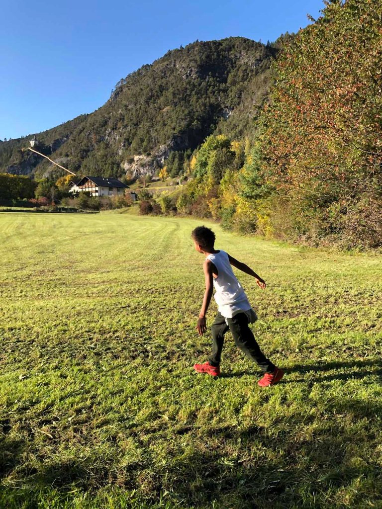 Es ist sehr abgelegen und ruhig hier, trotzdem gibt es für die Kinder viel zu tun. Ein Stall mit Kühen ist in der Nähe, ausserdem gibt es einiges an Spielzeug herumstehen. Genau das Richtige für unsere Horde.