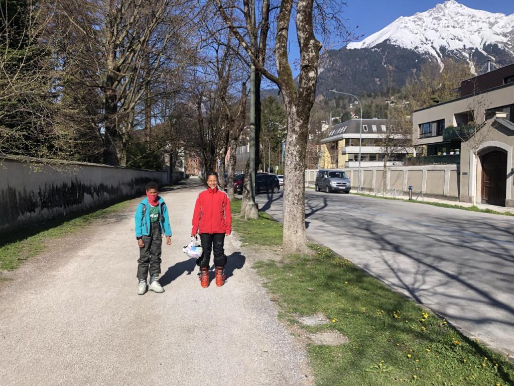 Vom Parkplatz „Axamer Lizum“ starten wir, neben der Standardausrüstung mit Figl bestückt in Richtung Halsl und Saile…
