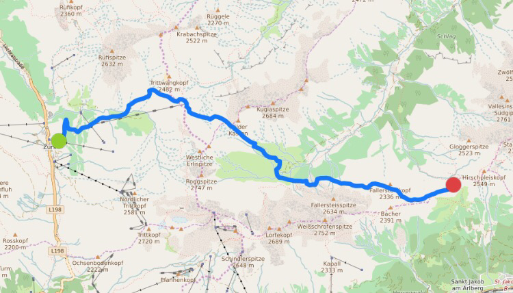 Nach ein wenig mehr als 2 Stunden erreichen wir unseren Ausgangspunkt, Zürs.
