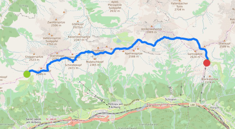 Nach einer gemütlichen Nacht im privaten Zimmer wachen wir wieder zu bestem Wetter auf. Ein Blick aus dem Fenster, spektakulär über das Stanzertal, lässt den Tag gut beginnen.