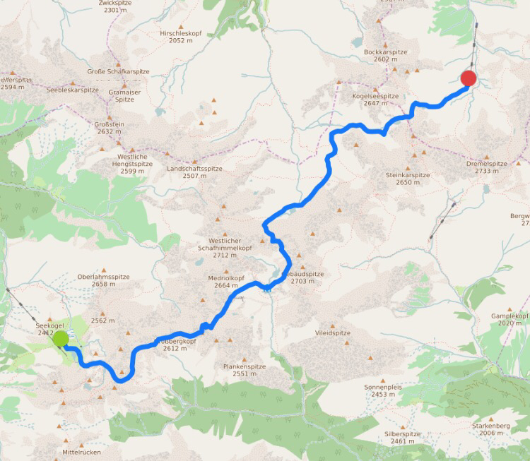 Der Weg zur Seescharte (2.599m) ist bald geschafft, dort überholen wir die 3te und letzte Gruppe für heute… die meisten Gruppen sind auf dem E5 Richtung Zams, wir zweigen bald nach der Seescharte nach links, Richtung Württemberger Haus, ab.