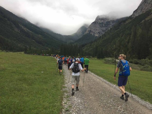 Im Bus rufe ich noch auf der Leutkirchner Hütte an, um ein Zimmer zu reservieren, aber der Hüttenwirt meint nur, „alles ausgebucht, da braucht´s gar nit kemmen…“. Welch ein Schock zuerst, aber wir beschließen, trotzdem unser Glück zu versuchen…