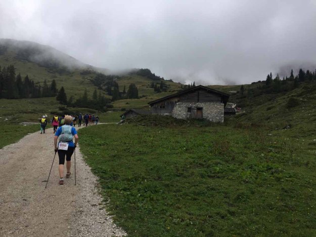 Der Boden ist weit und zu unserer Rechten sehen wir größere Herden an Almvieh. Das gehört wohl zur Pazüel-Alm.