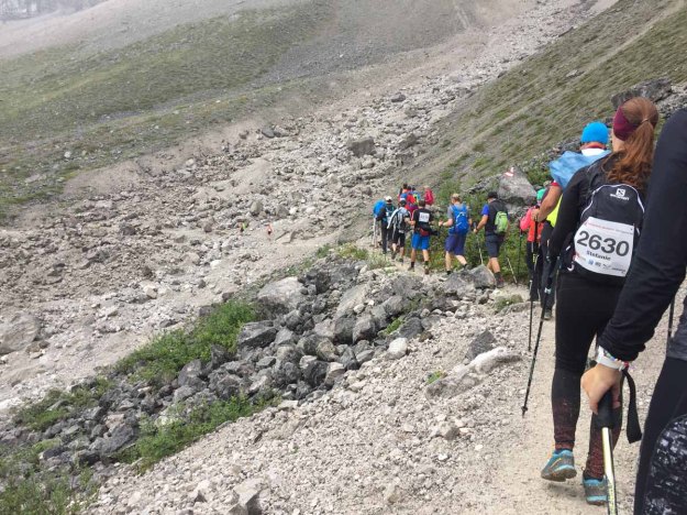 Nach dieser unguten Stelle müssen wir ein paar Meter im sogenannten Steinschlag absteigen…
