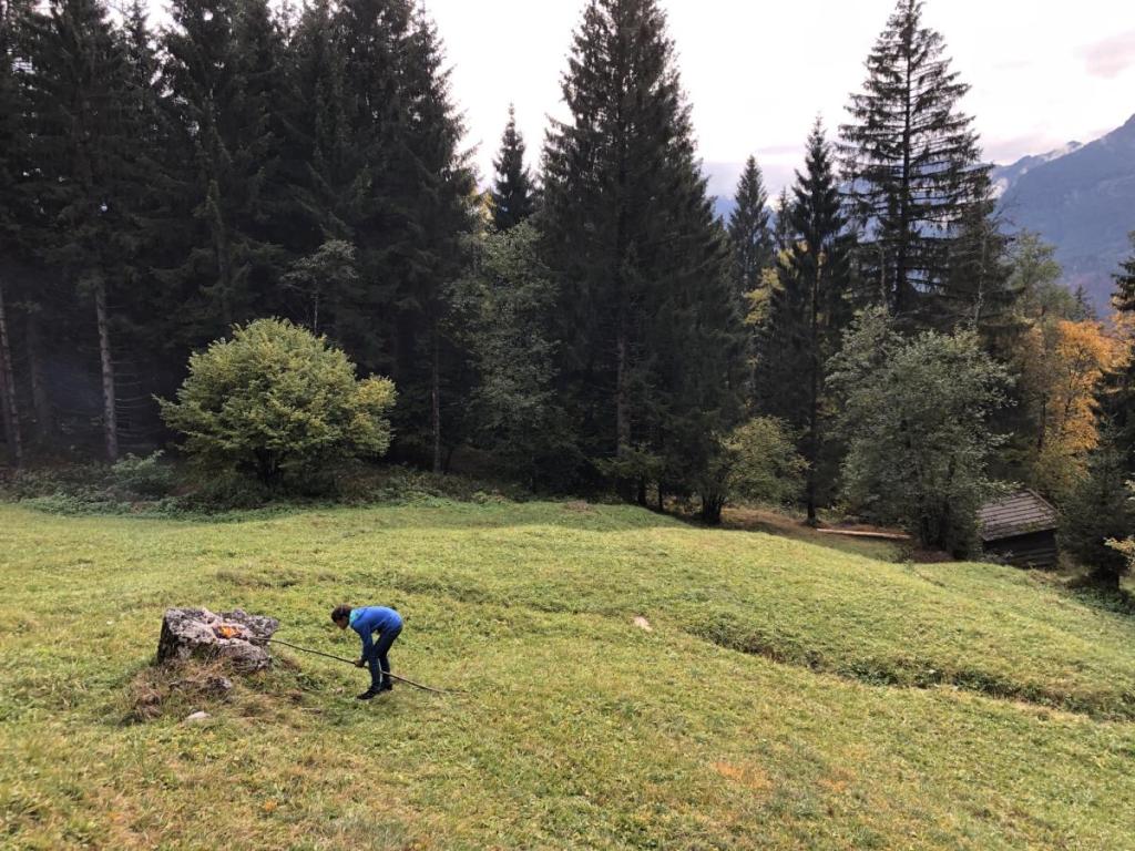 Die Wiese ist hat gerade das Winterkleid abgeschüttelt und ist noch dementsprechend kurz, das wird sich wohl in den nächsten Wochen rasch ändern. Am „Alten Baum“ haben wir eine Feuerstelle eingerichtet,