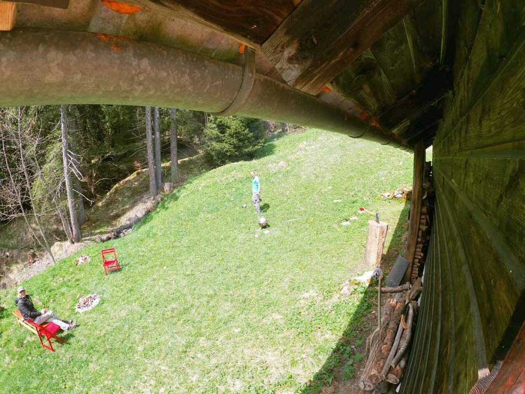 Wir sitzen eine Weile auf der Terrasse, dann wandern wir wieder retour zu unserer Hütte.