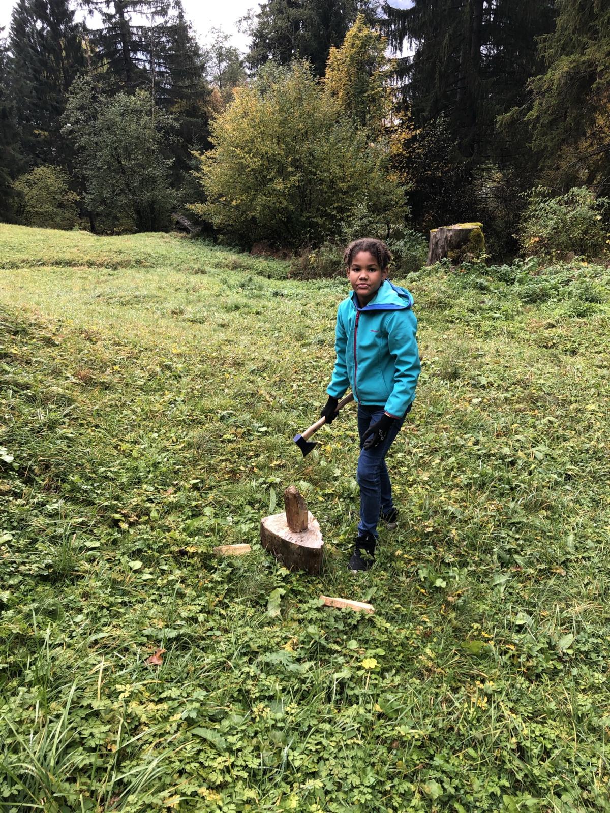 Am Morgen haben wir mit Papa ausgemacht, auf das Säulinghaus zu wandern. Sara bleibt in der Hütte, während Letu und ich mitgehen. Von der Hütte starten wir ein Stück über den Forstweg, dann erreichen wir den Steig.