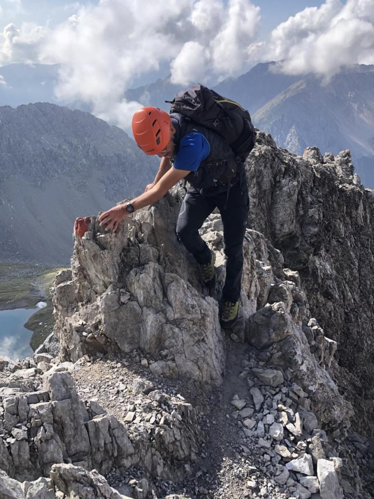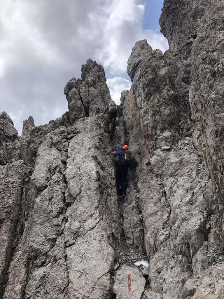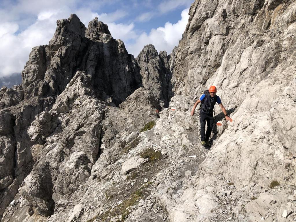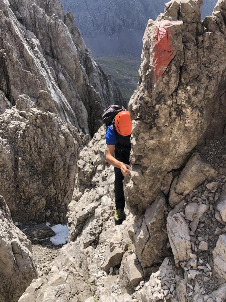 Zurück in der Vorderen Dremelscharte können wir die Helme verstauen. Diese waren in diesem Gelände ein echter Sicherheitsgewinn. Unser Glück, wir waren heute alleine bei dieser Tour.