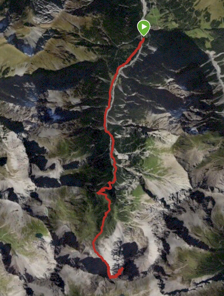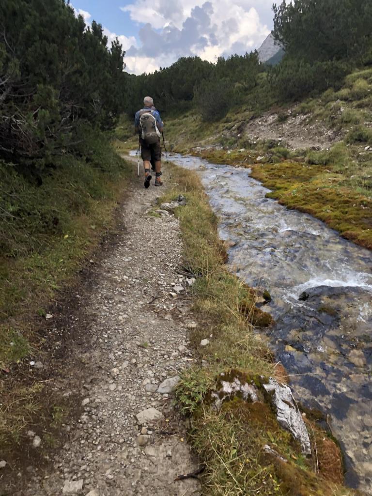 Durch den Kessel des Parzinn steigen wir, zuerst eher flach entlang des Baches, in Richtung Vordere Dremelscharte. Ein Blick zurück offenbart uns die Schönheit dieses Abschnitts der Lechtaler Alpen. Nicht umsonst wird die Gegend um den Parzin als einer der schönsten Flecken hier gehandelt.