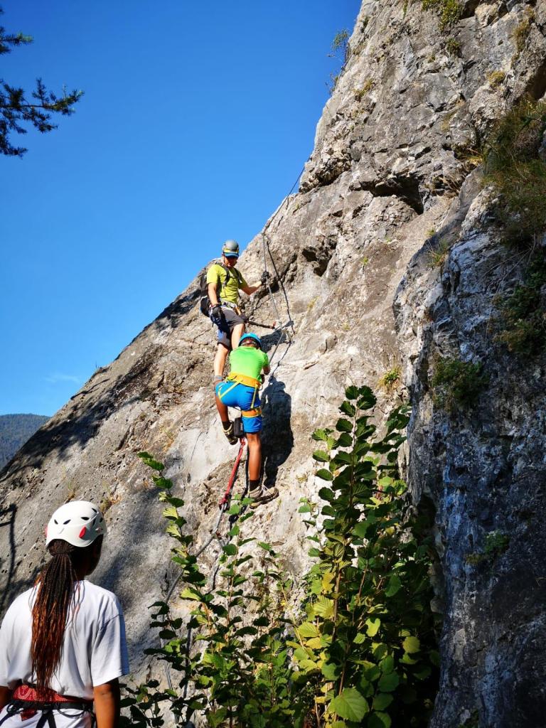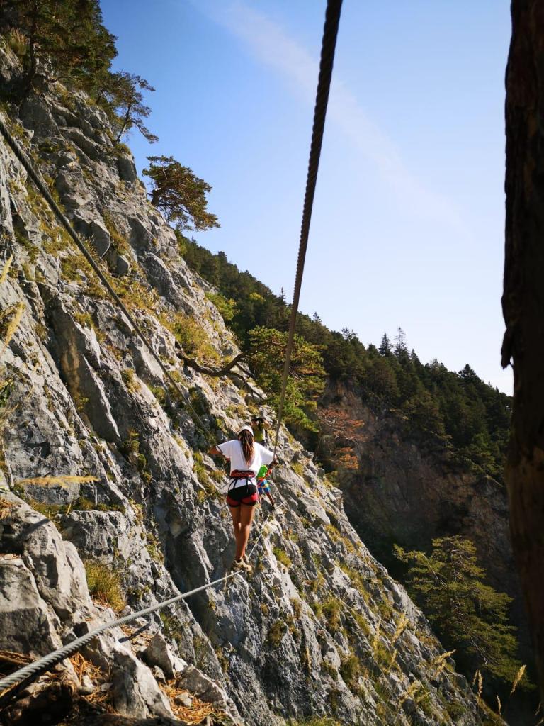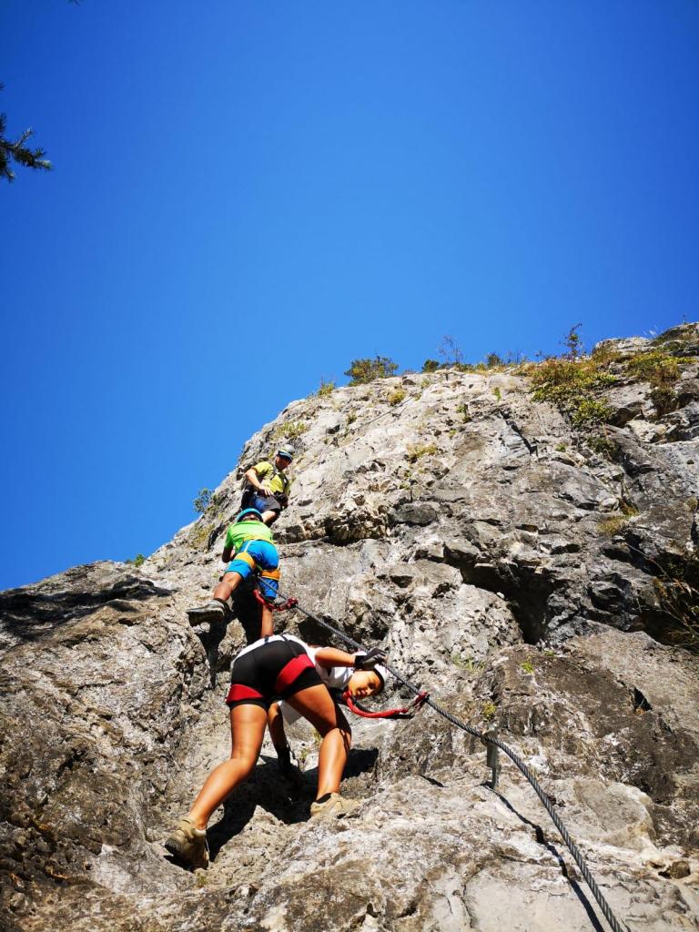 Das haben sich heute wohl mehr Leute gedacht, als wir an den Einstieg zum Klettersteig kommen, sehen wir schon Massen an Leuten anstehen. Ein kurzer Schreckmoment, durch den wir uns aber nicht irritieren lassen (zum Glück).