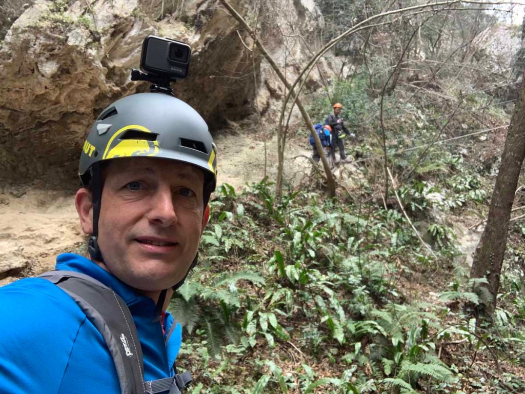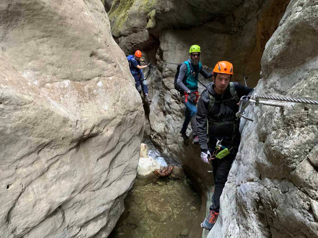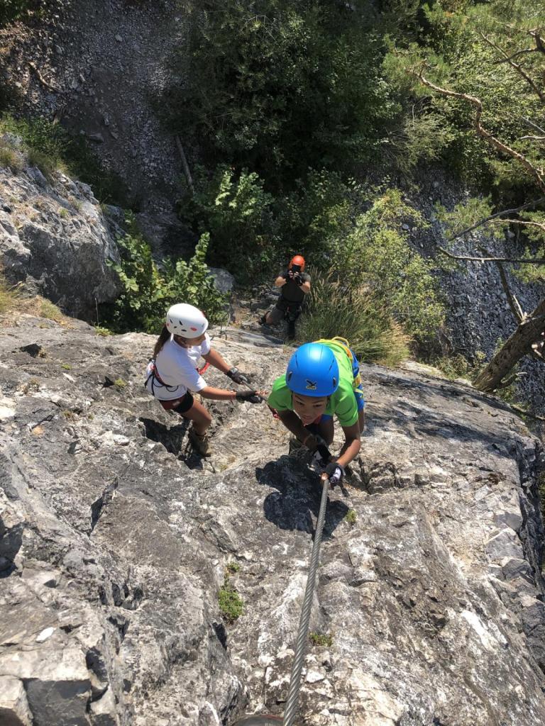 Letu meint nur, es schaut fast aus wie auf den Bildern zum Everest… dem kann ich nur zustimmen. Irgendwann sind wir an der Reihe, die erste Wand stellt auch gleich die Schlüsselstelle des Klettersteiges dar.