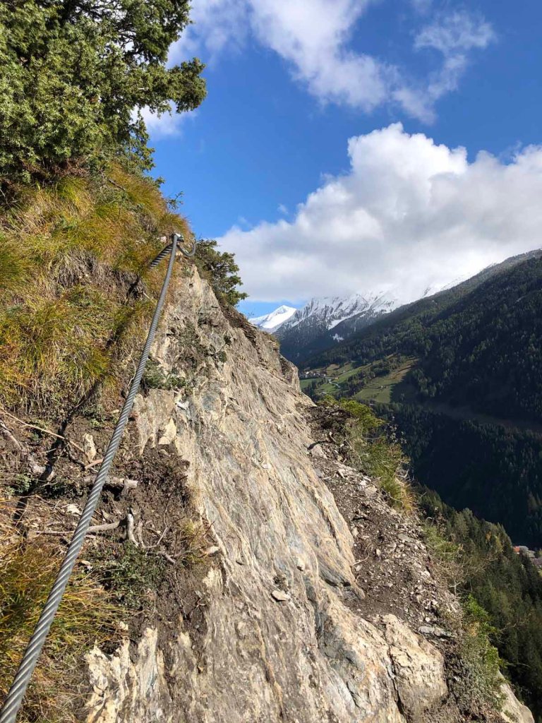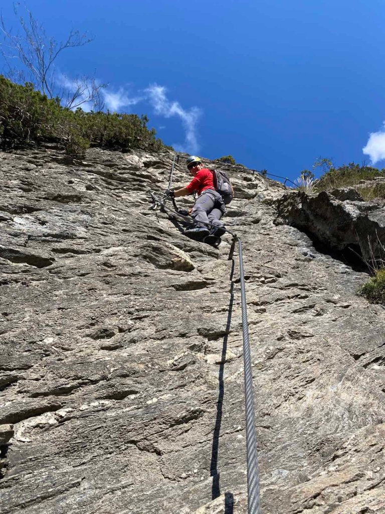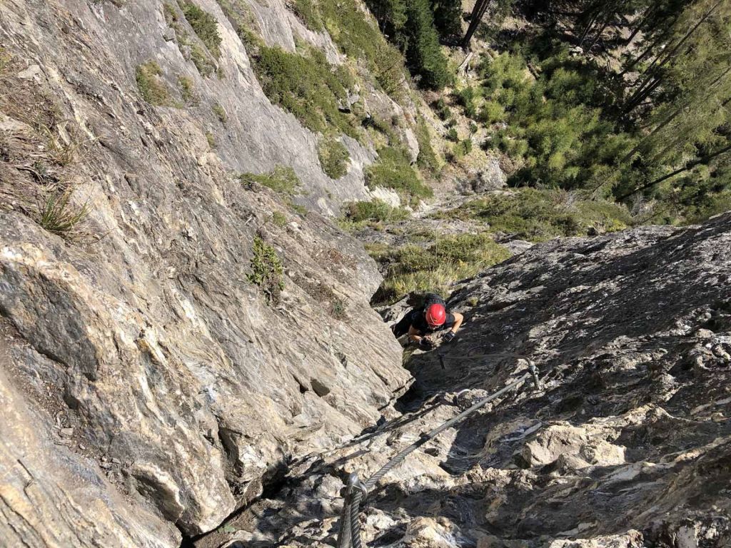 Die Steiganlage ist von der Spur her gut gewählt, man kommt ohne Probleme über Stellen, die ich mir ohne Seil nicht gerne antun wollen würde.