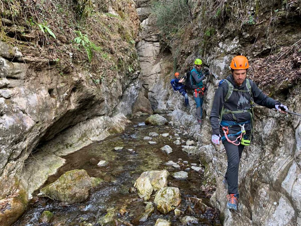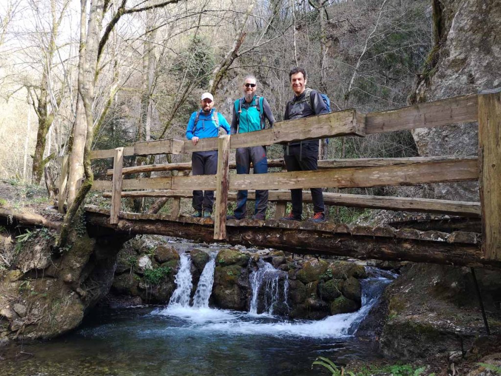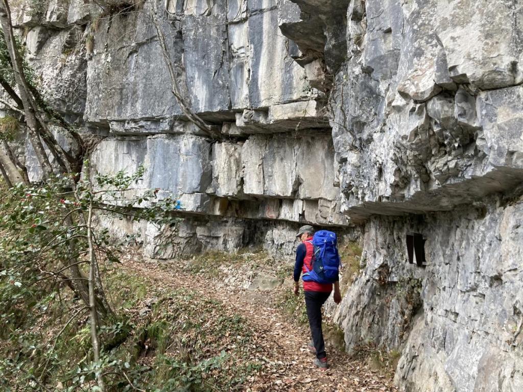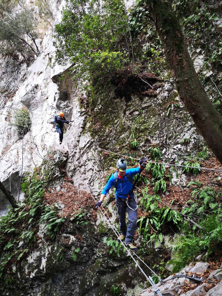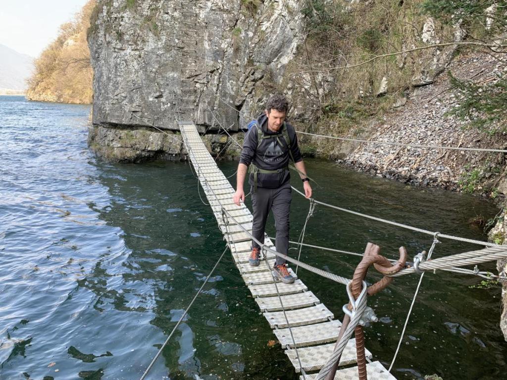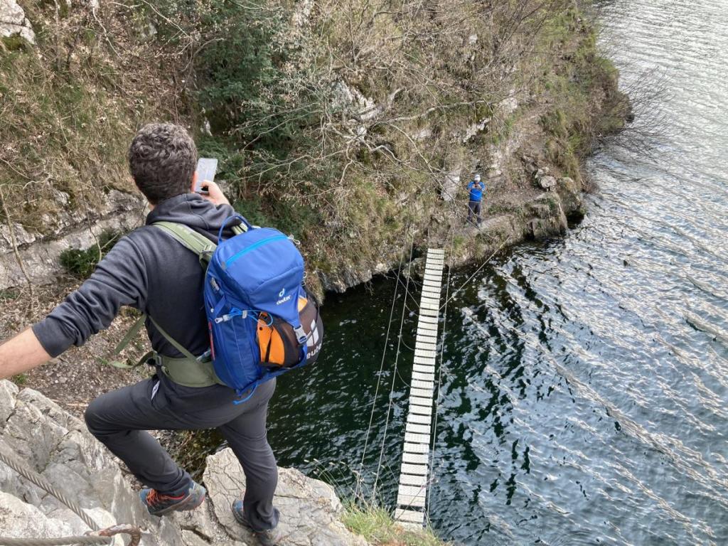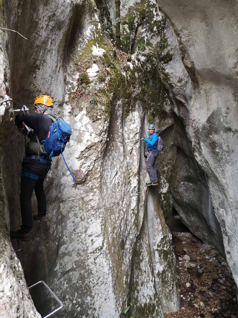 Eine Stelle des Klettersteigs wurde wohl später mit einer kleinen Brücke entschärft, mir kommt vor, dass diese Brücke nicht von Anfang an Bestand. Alte Hacken lassen etwas anderes vermuten.