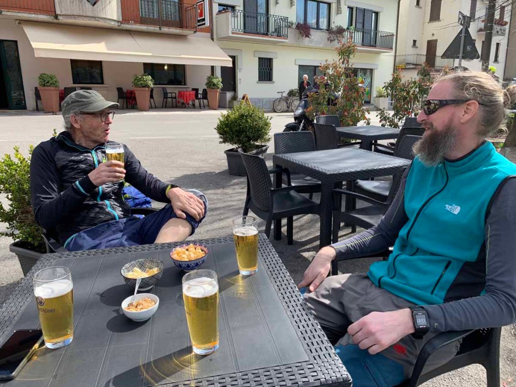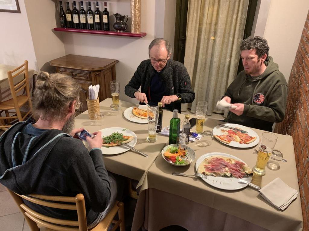 Während Letu sich ein Schnitzel mit Kartoffelsalat gönnt, nehme ich ein Wildschweinragout mit Serviettenknödel. Das Essen ist richtig gut, und wir lassen es und schmecken.
