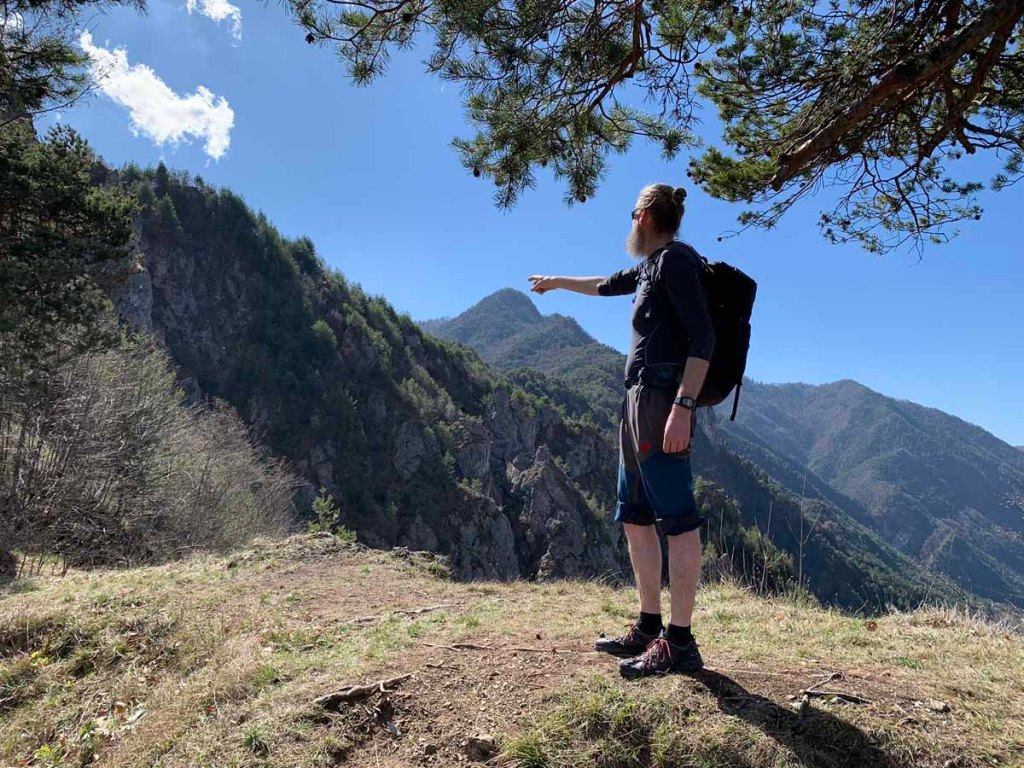 Im Blick zurück sieht man die kühne Spitze der Kaminspitze.