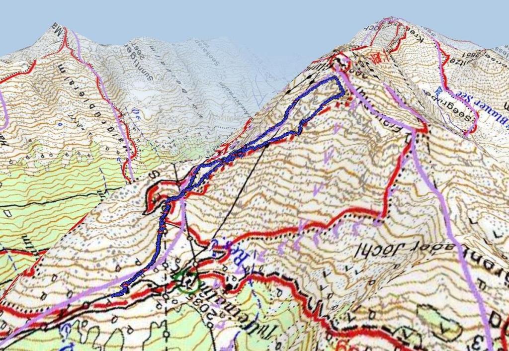 Vom langen Sattel steigen wir ab zum Brauneggsteig und über diesen zurück zur Seegrube.