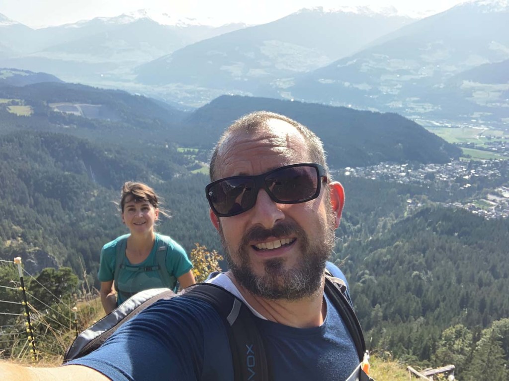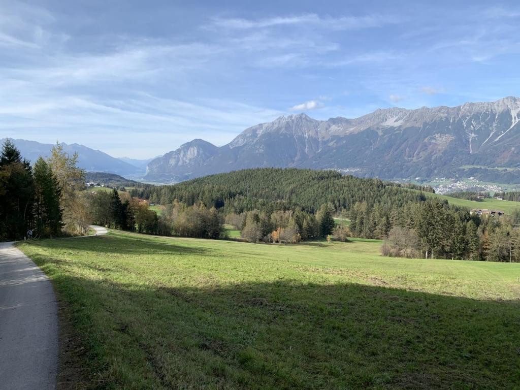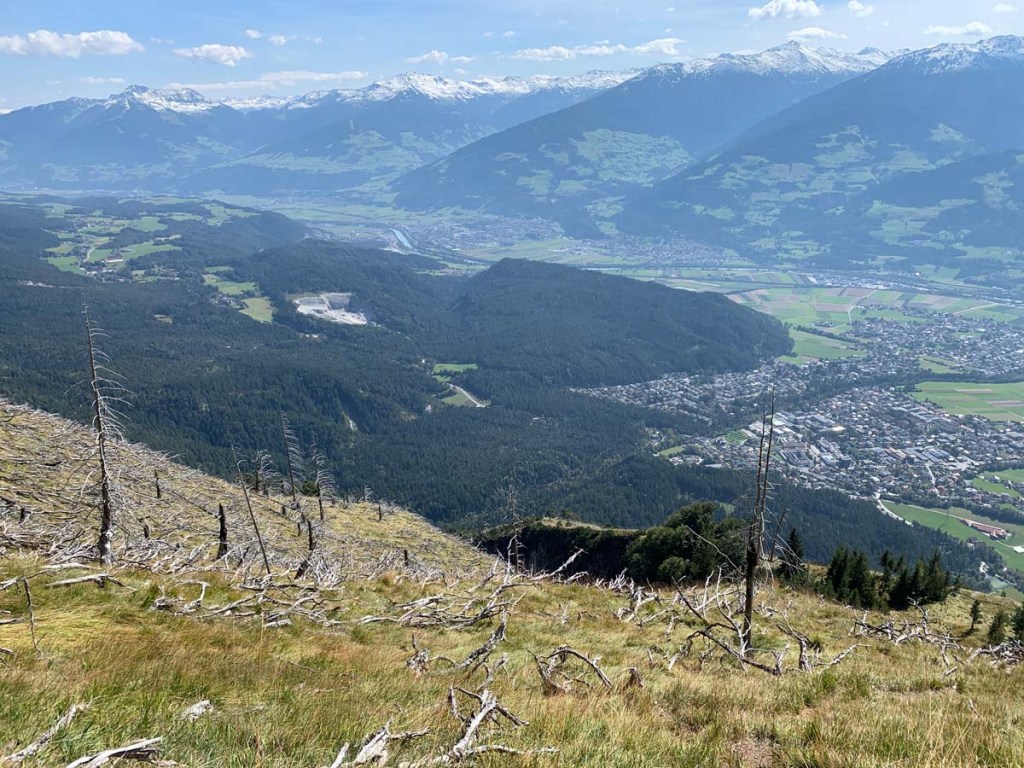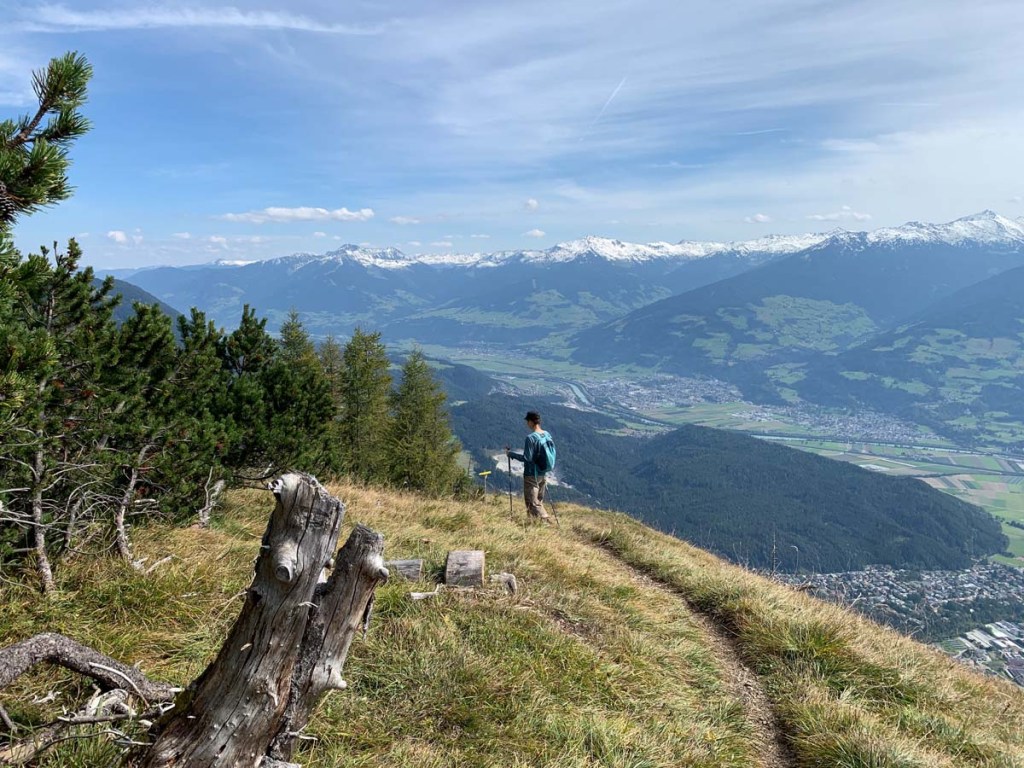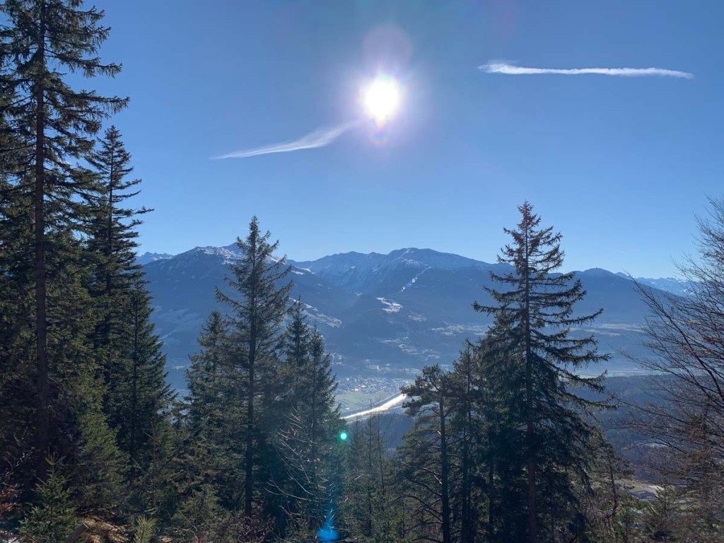 Von hier haben wir einen guten Blick auf den Gnadenwald, Mils, den Haller Wiesen, aber auch auf Kellerjoch, Glungezer, sogar den Haneburger können wir gut ausmachen.